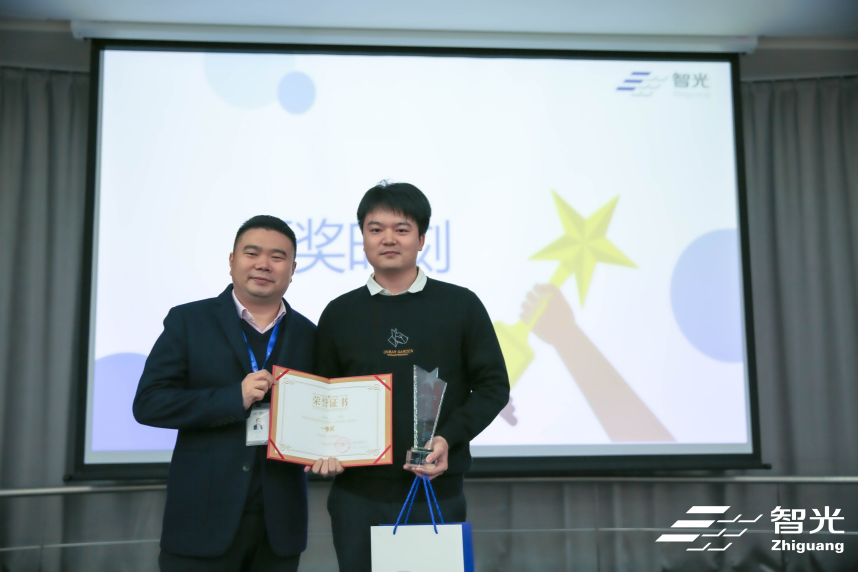 (圖為廣州智光電氣股份有限公司綜合管理中心總監(jiān)王一休為一等獎(jiǎng)獲獎(jiǎng)選手頒獎(jiǎng))